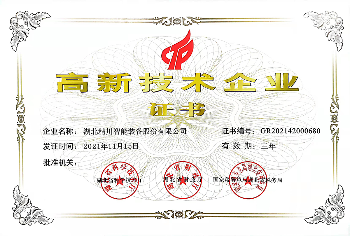 High-tech enterprise certificate
