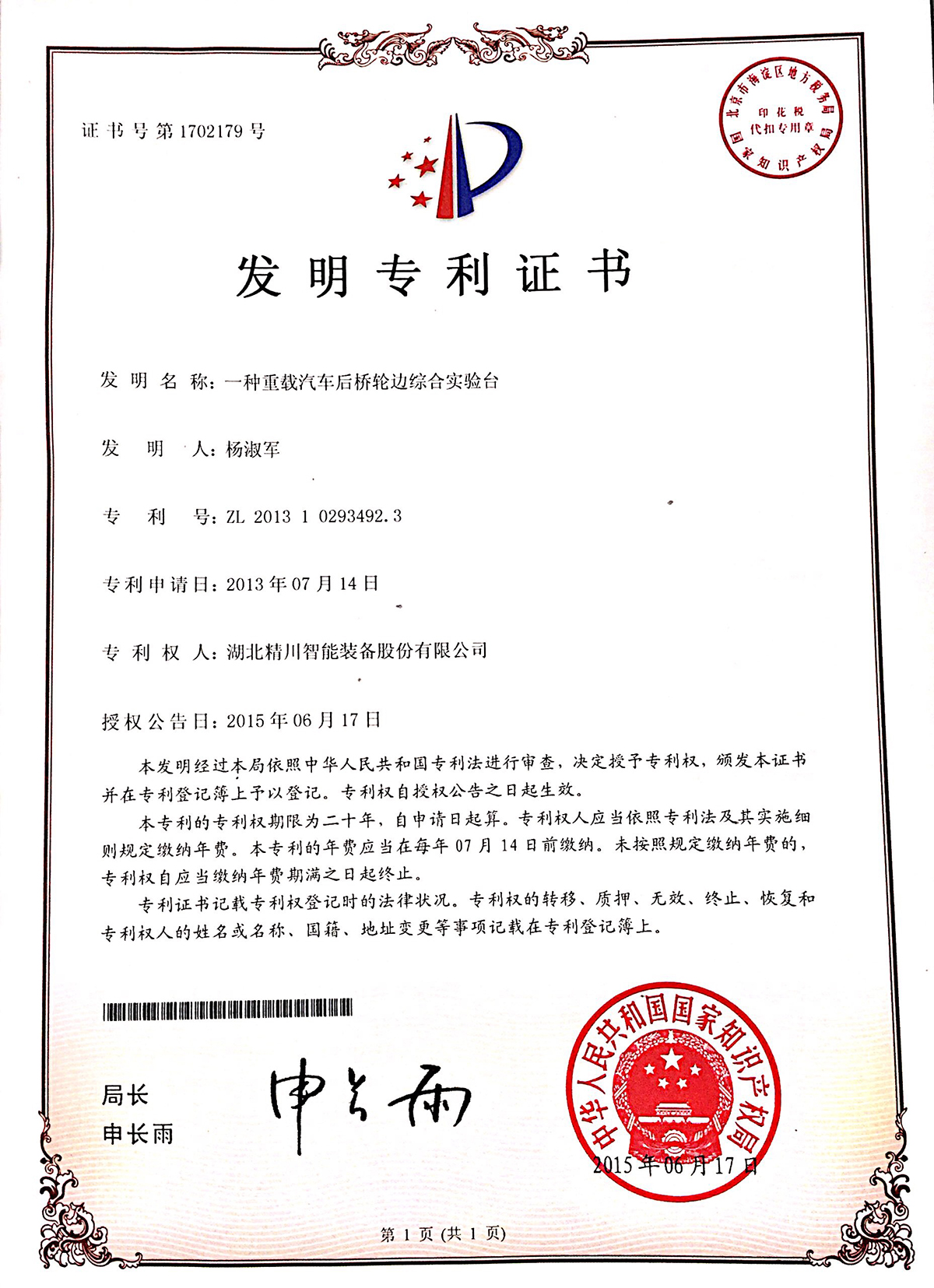 The utility model relates to a rear axle wheel edge comprehensive test bench for heavy duty vehicle in 2015